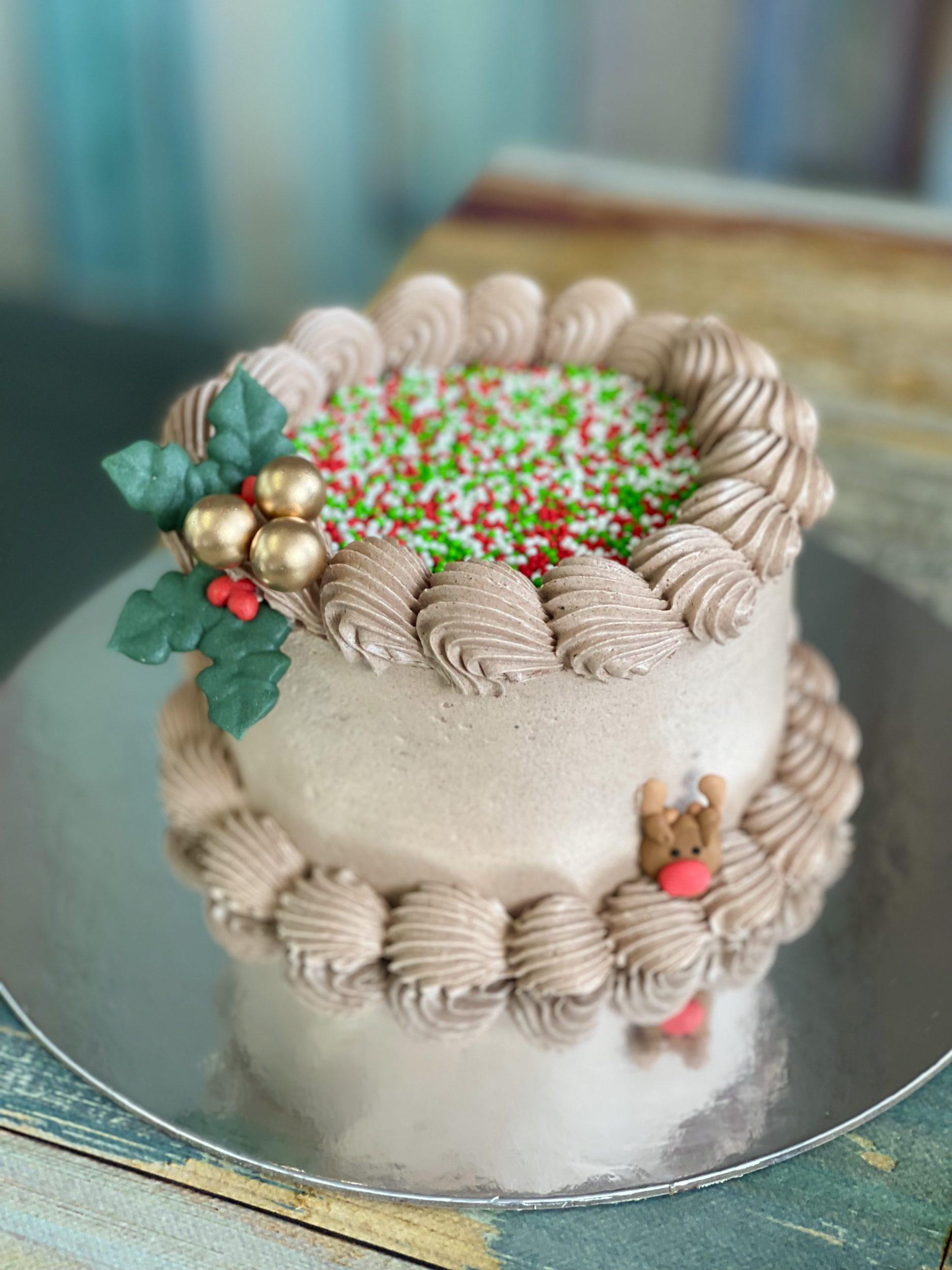 Sale price! Mini chocolate xmas cake with reindeer and holly. Christmas special price!