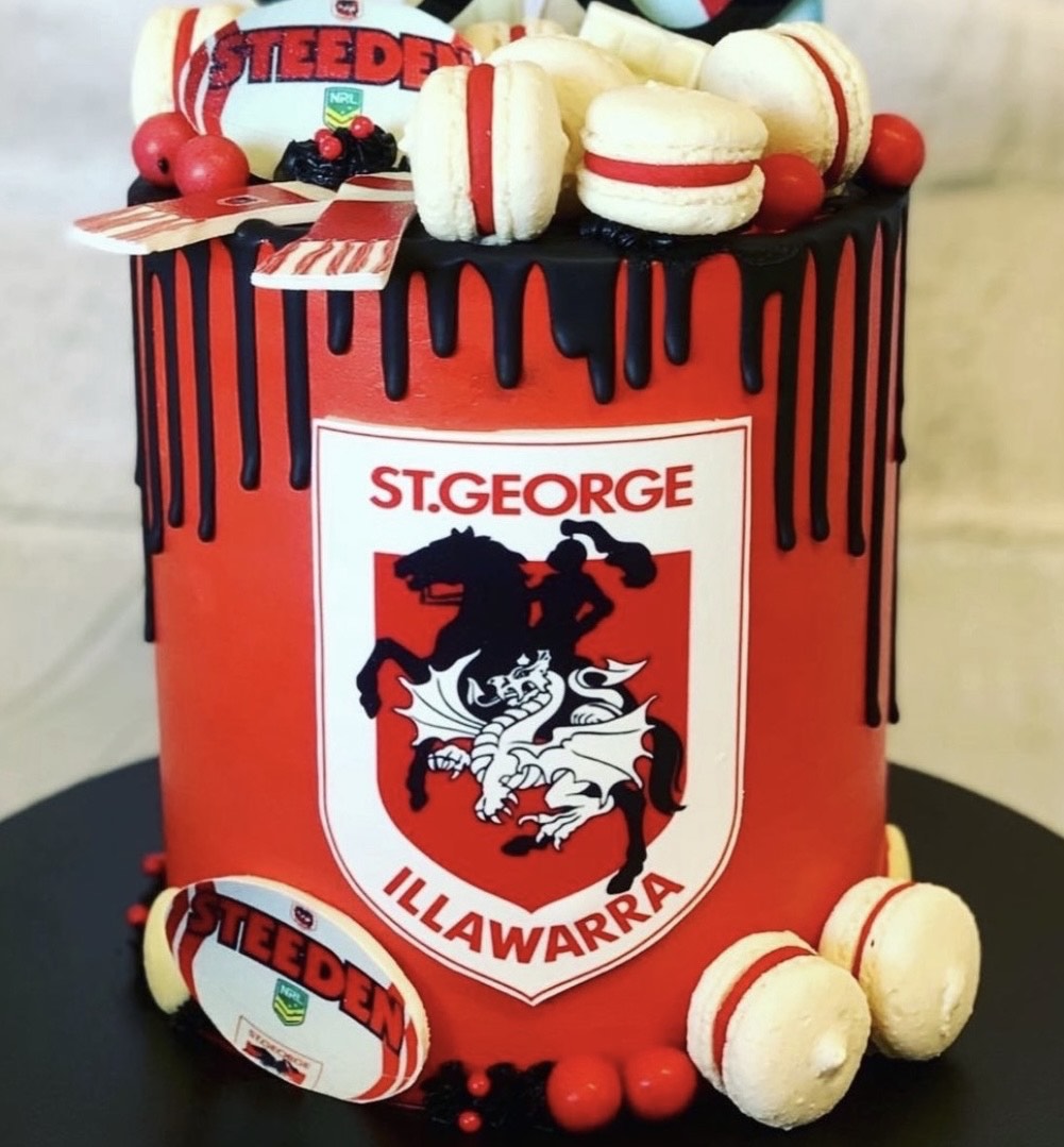 Dragons football cake – not a Dragons fan! You can choose any football, soccer, basketball etc team for this cake. We will match the colours with your chosen team!